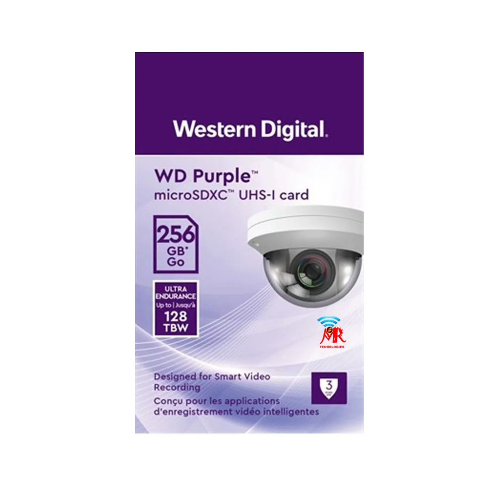 Las tarjetas microSD WD Purple de Western Digital están diseñadas específicamente para cámaras de seguridad. Las tarjetas utilizan la tecnología 3D NAND de 96 capas, por lo que ofrece una combinación de resistencia, alto rendimiento y un amplio rango de capacidad. Además, el soporte de funcionalidad de supervisión del estado de la tarjeta posibilita la gestión preventiva del almacenamiento
